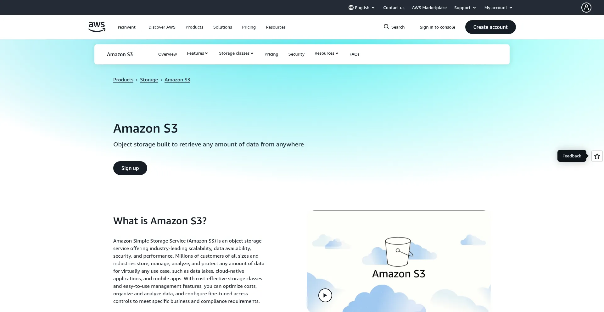 Amazon S3 is cloud object storage with industry-leading scalability, data availability, security, and performance. S3 is ideal for data lakes, mobile applications, backup and re...