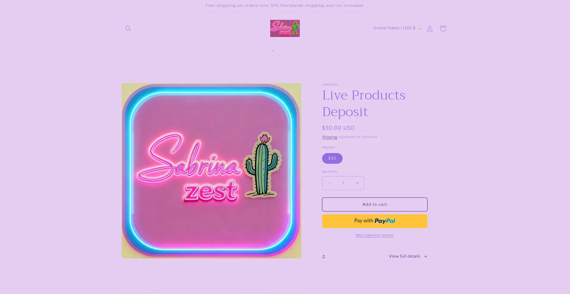 sabrinaz.com www.shopify.com error-analytics-sessions-production.shopifysvc.com monorail-edge.shopifysvc.com fonts.shopifycdn.com www.paypalobjects.com www.paypal.com shopify.com cdn.shopify.com otlp-http-production.shopifysvc.com