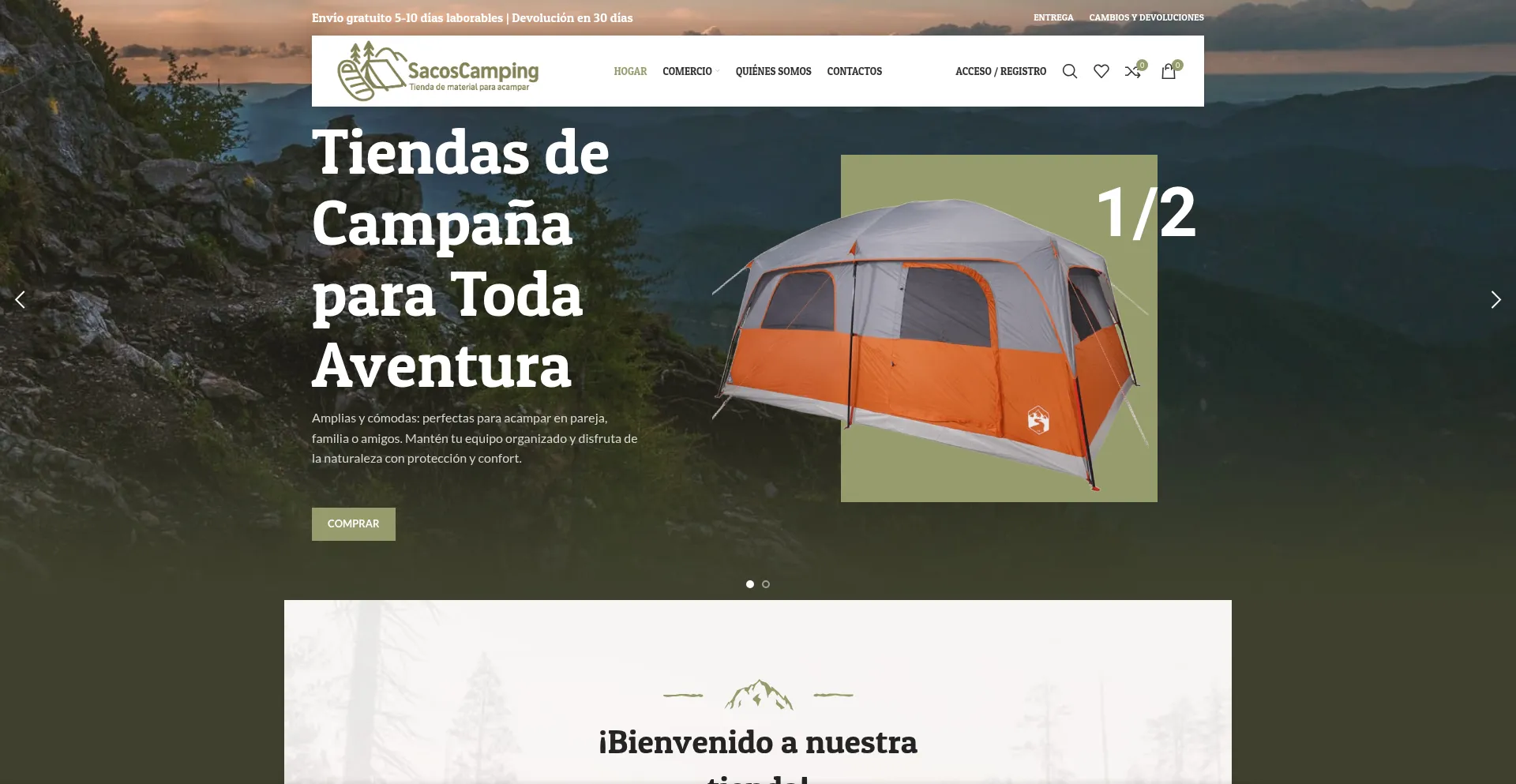 Analysis indicates that sacoscamping.com operates as an e-commerce platform facilitating online transactions for goods or services. The website implements shopping cart functionality, payment processing systems, and product catalog features typical of commercial retail operations.