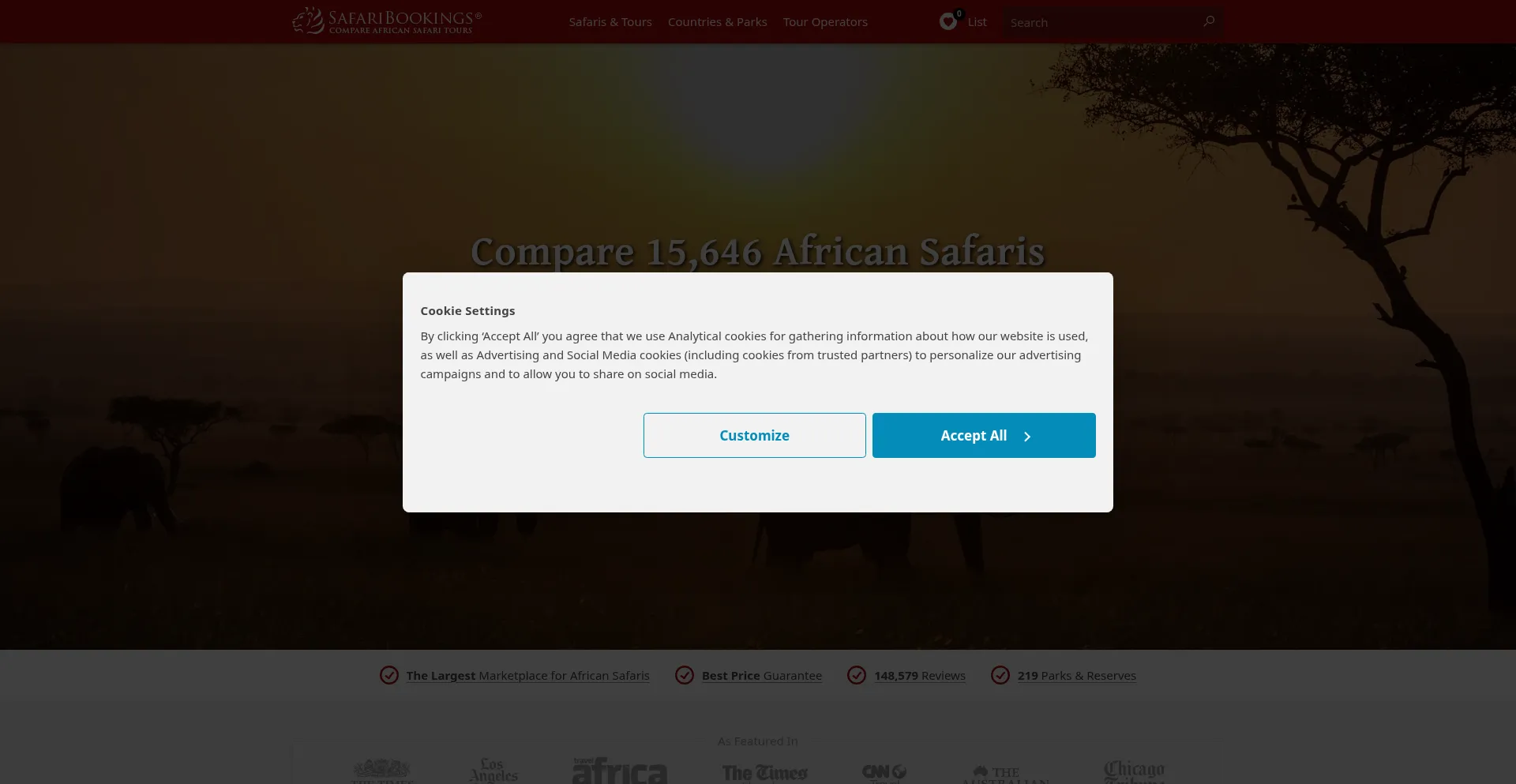 The website implements cookie consent mechanisms in compliance with privacy regulations such as GDPR or CCPA. This demonstrates that safaribookings.com adheres to data protection standards and provides users with control over personal data collection practices.