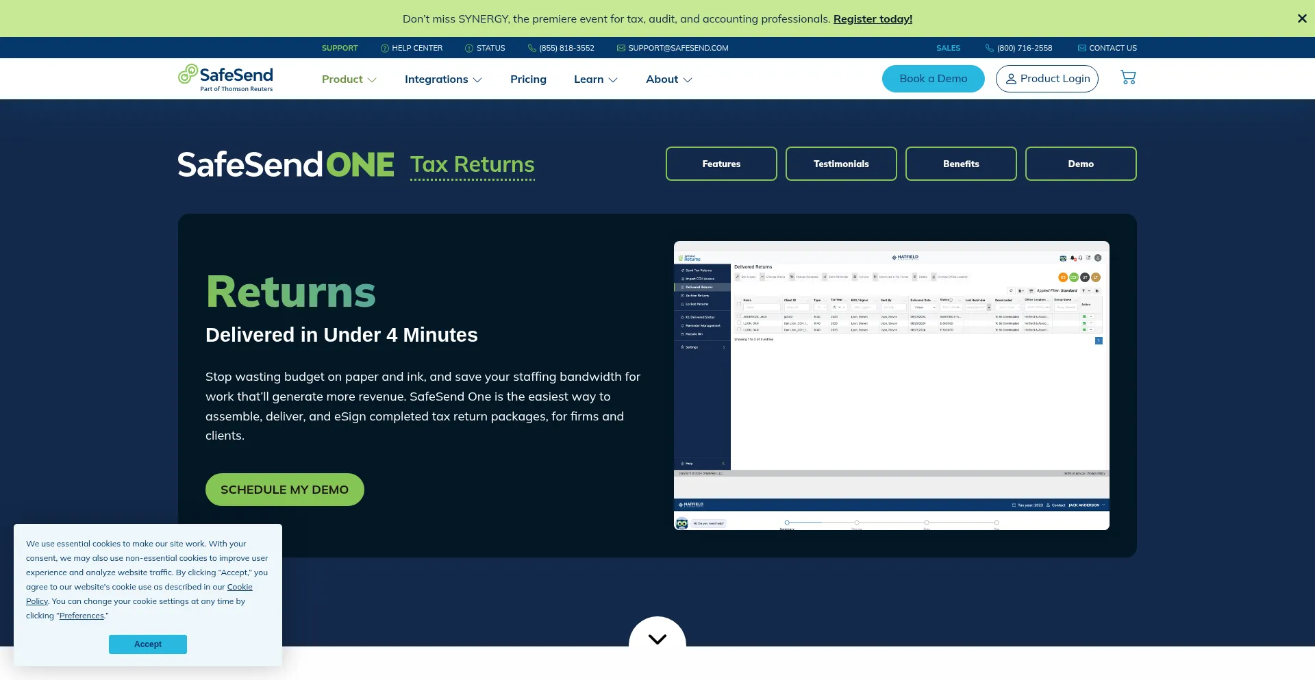 SafeSend One is the easiest way to assemble, deliver, and e-sign completed tax return packages, for firms and clients.