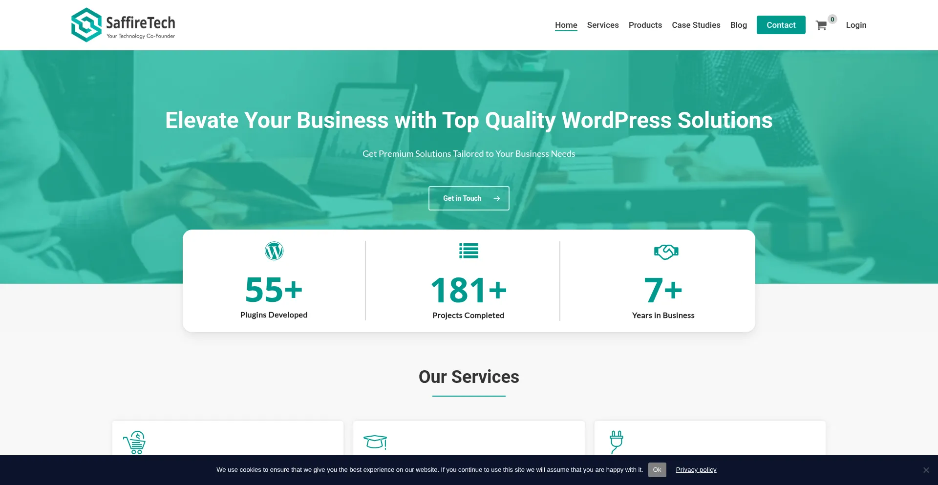 The website implements cookie consent mechanisms in compliance with privacy regulations such as GDPR or CCPA. This demonstrates that saffiretech.com adheres to data protection standards and provides users with control over personal data collection practices.