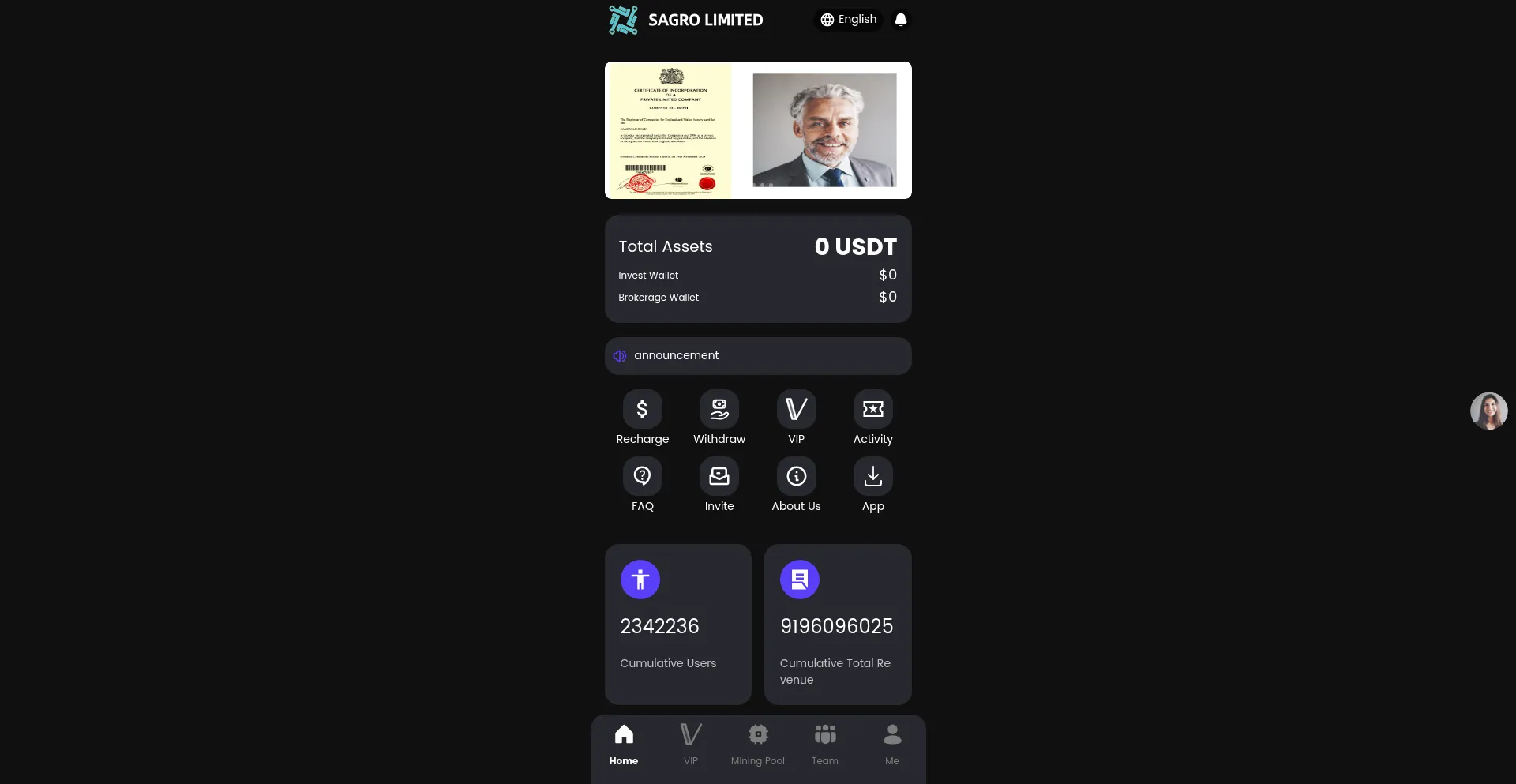 The sagrolimited.one probably offers cloud mining services or cryptocurrency mining investments. Some platforms provide legitimate mining rental services, while others may use fake mining dashboards to display virtual earnings that cannot be withdrawn.