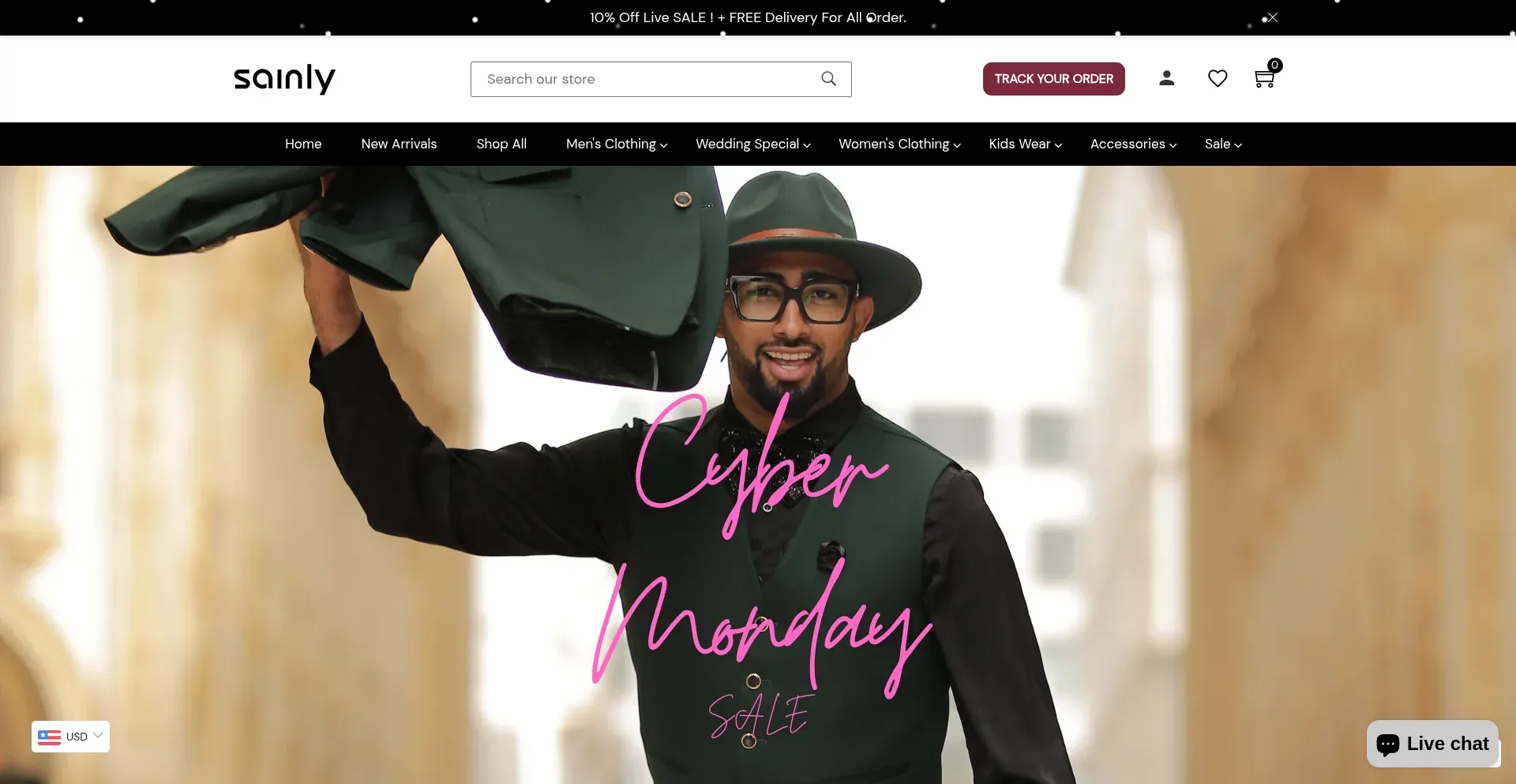 The sainly.com website utilizes free e-commerce platform solutions, which may indicate cost-conscious operations but could also suggest limitations in security features, customer support, or advanced functionality compared to enterprise-grade solutions.