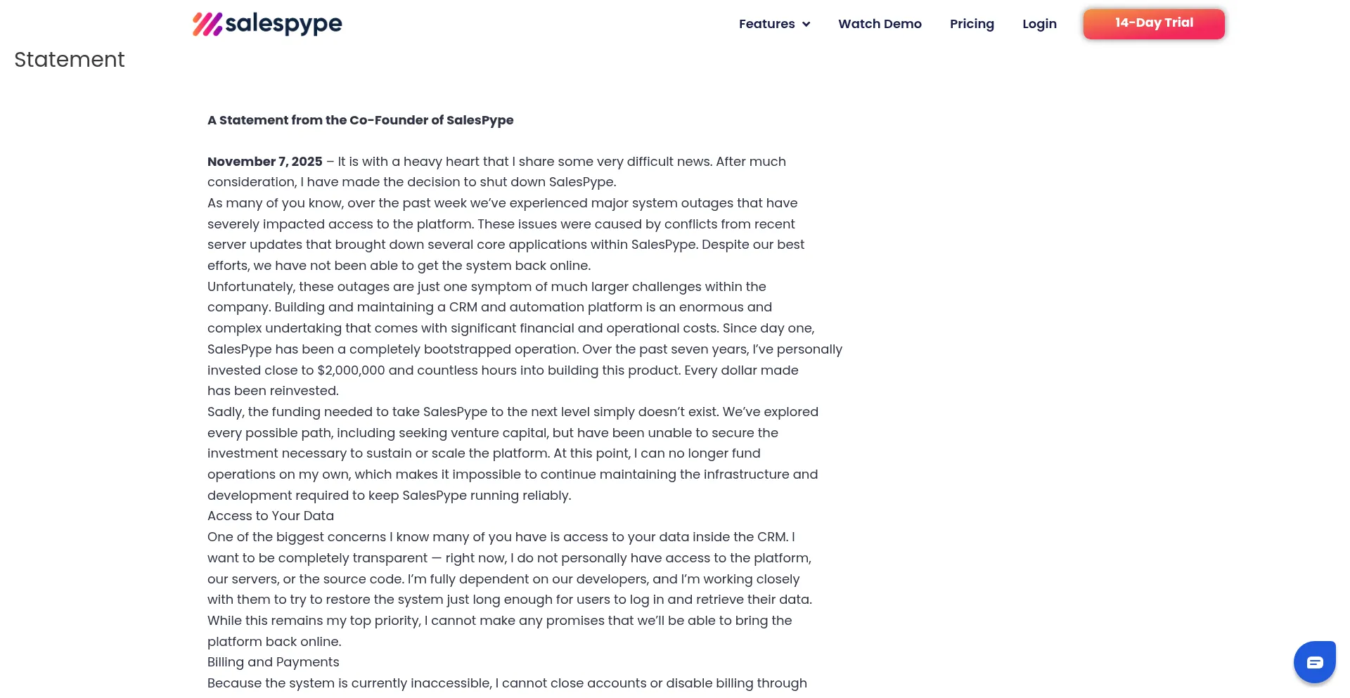 HTML analysis indicates that salespype.com website provides extended data, including information about the company or its products and services. This may suggest a commitment to transparency.