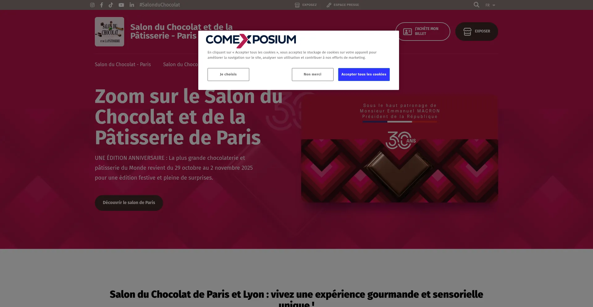 The website implements cookie consent mechanisms in compliance with privacy regulations such as GDPR or CCPA. This demonstrates that salon-du-chocolat.com adheres to data protection standards and provides users with control over personal data collection practices.