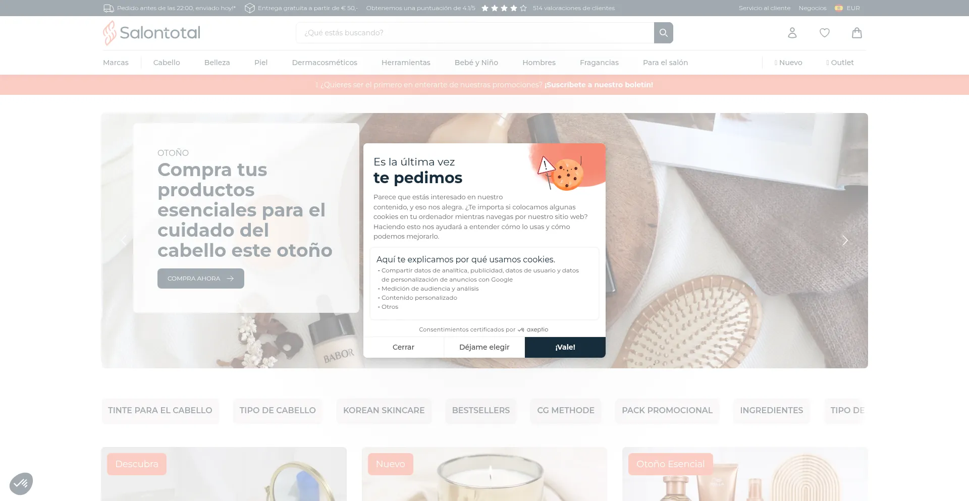 The salontotal.es website uses Google Tag Manager to add and update tracking tags on its website.