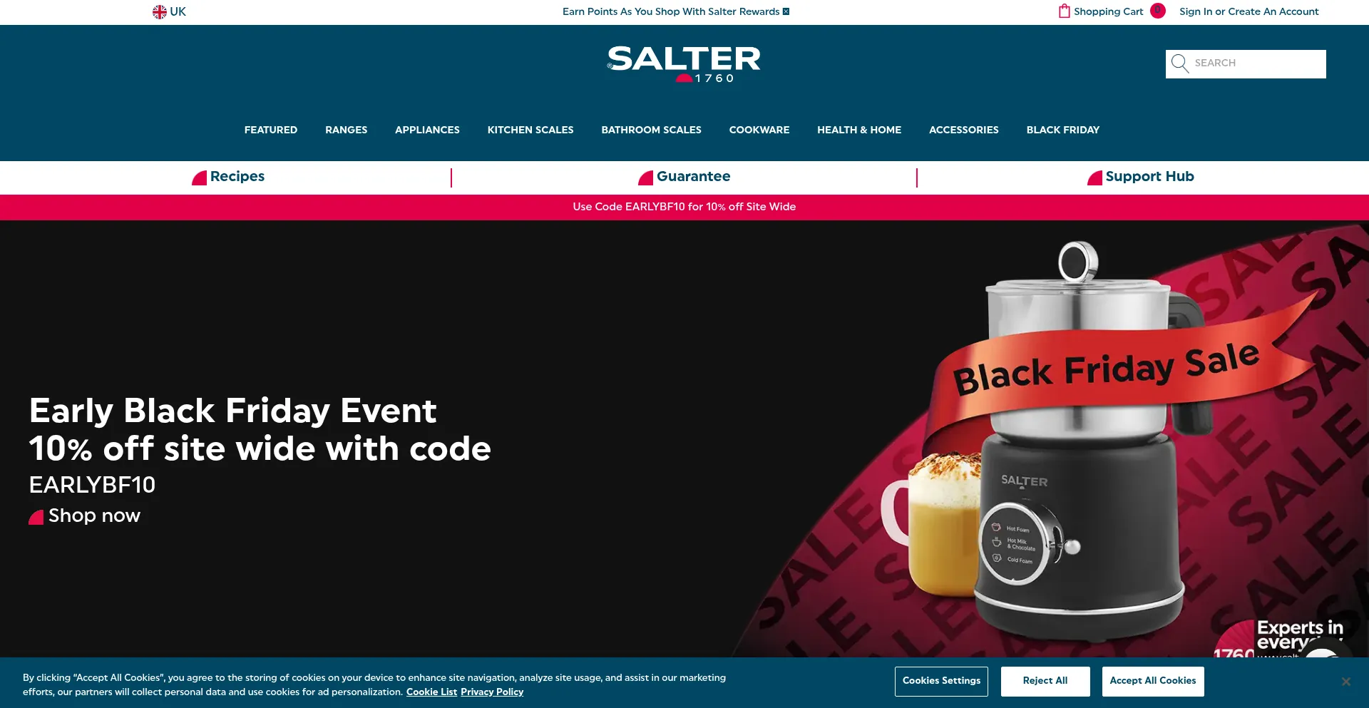 The website implements cookie consent mechanisms in compliance with privacy regulations such as GDPR or CCPA. This demonstrates that salter.com adheres to data protection standards and provides users with control over personal data collection practices.