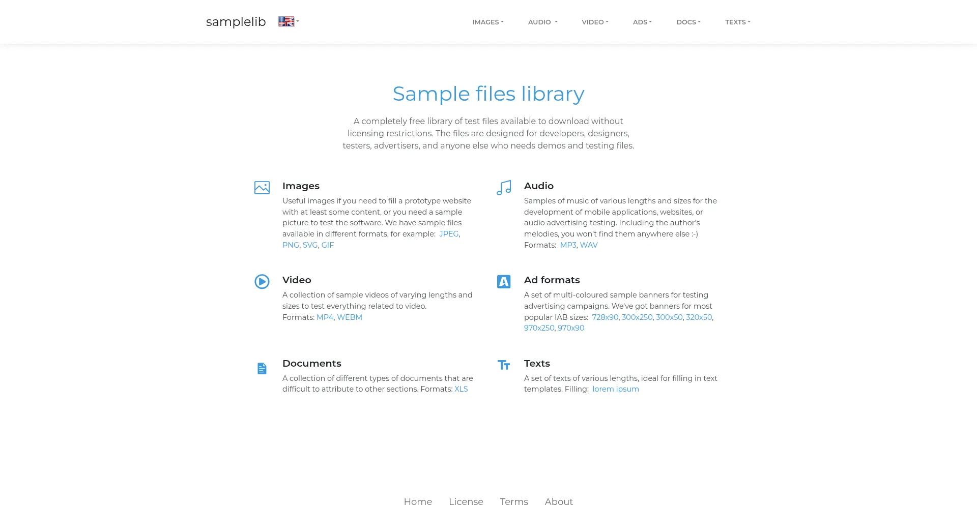 samplelib.com uses Bootstrap, a widely-adopted open-source framework for responsive web development. Bootstrap enables efficient creation of mobile-friendly interfaces through standardized components and styling.