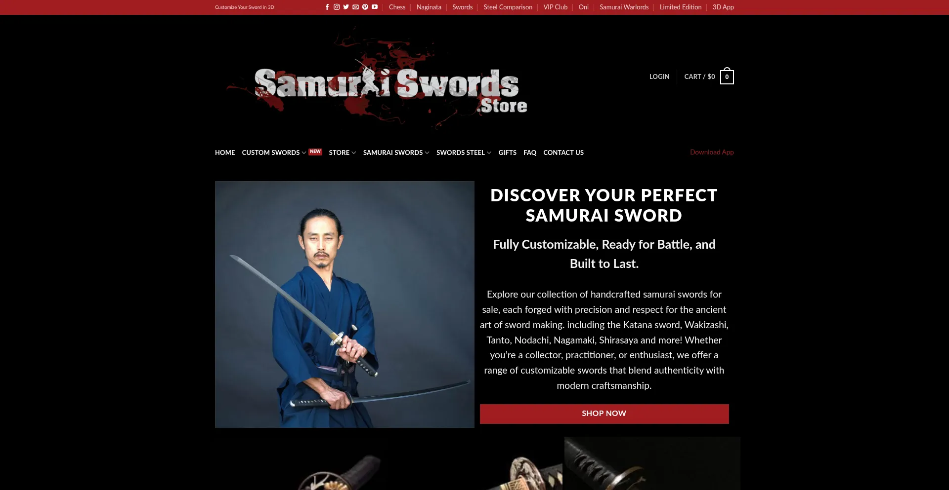 Discover authentic samurai swords crafted by master swordsmiths. Shop handmade Katana, Wakizashi, Tanto, and custom Japanese swords