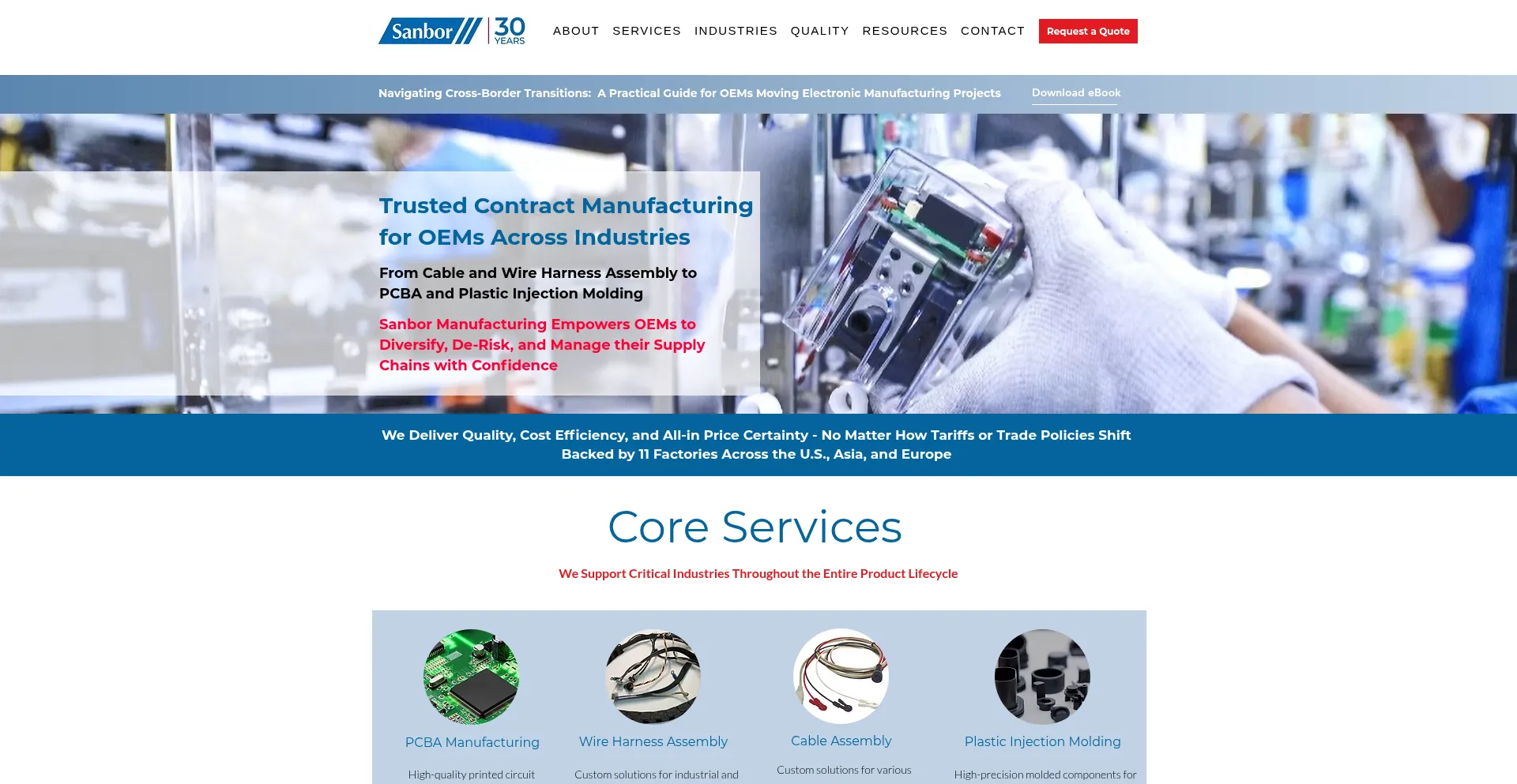 Sanbor Mfg is a trusted partner for OEMs in the United States, offering cable assembly, PCBA, and plastic injection molding services.