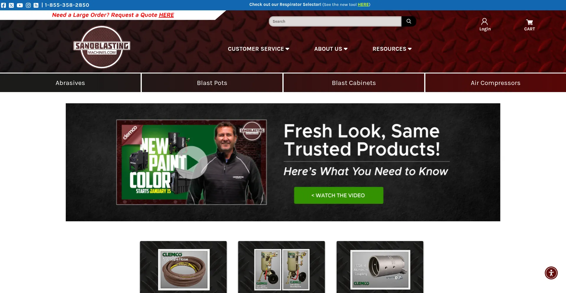 SandBlastingMachines.com is the #1 online Clemco distributor of abrasive blast machines, blast hoses, couplings, media valves, breathing air systems, nozzles, R/C systems, and m...
