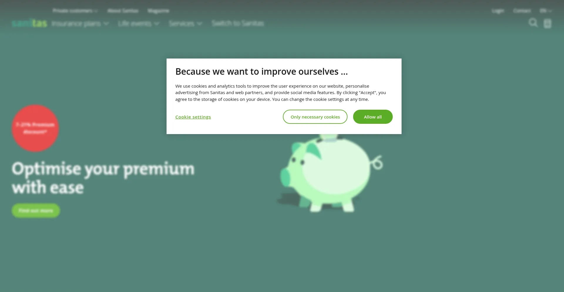 The website implements cookie consent mechanisms in compliance with privacy regulations such as GDPR or CCPA. This demonstrates that sanitas.com adheres to data protection standards and provides users with control over personal data collection practices.