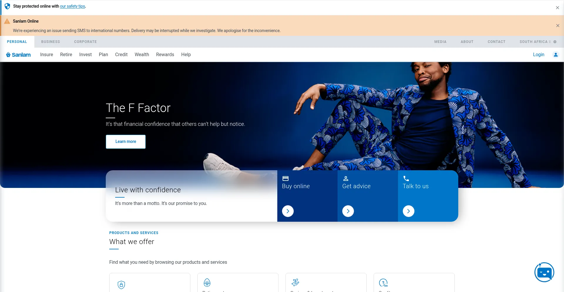 The sanlamonline.co.za website provides financial services including investment management, wealth advisory, or financial planning solutions. Services may encompass portfolio management, investment opportunities, financial consulting, or asset growth strategies for individual and institutional clients.