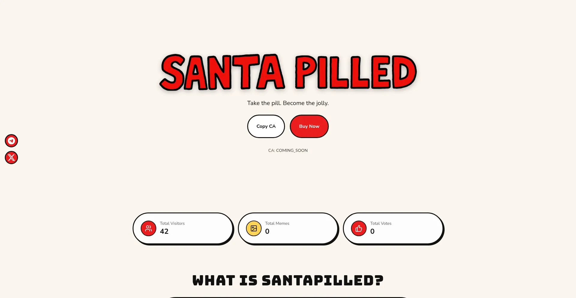 SantaPilled is a Christmas-fueled meme movement powered by pure chaos, jolly sigma energy, and oversized holiday pills. Join the cult of joy on Solana.