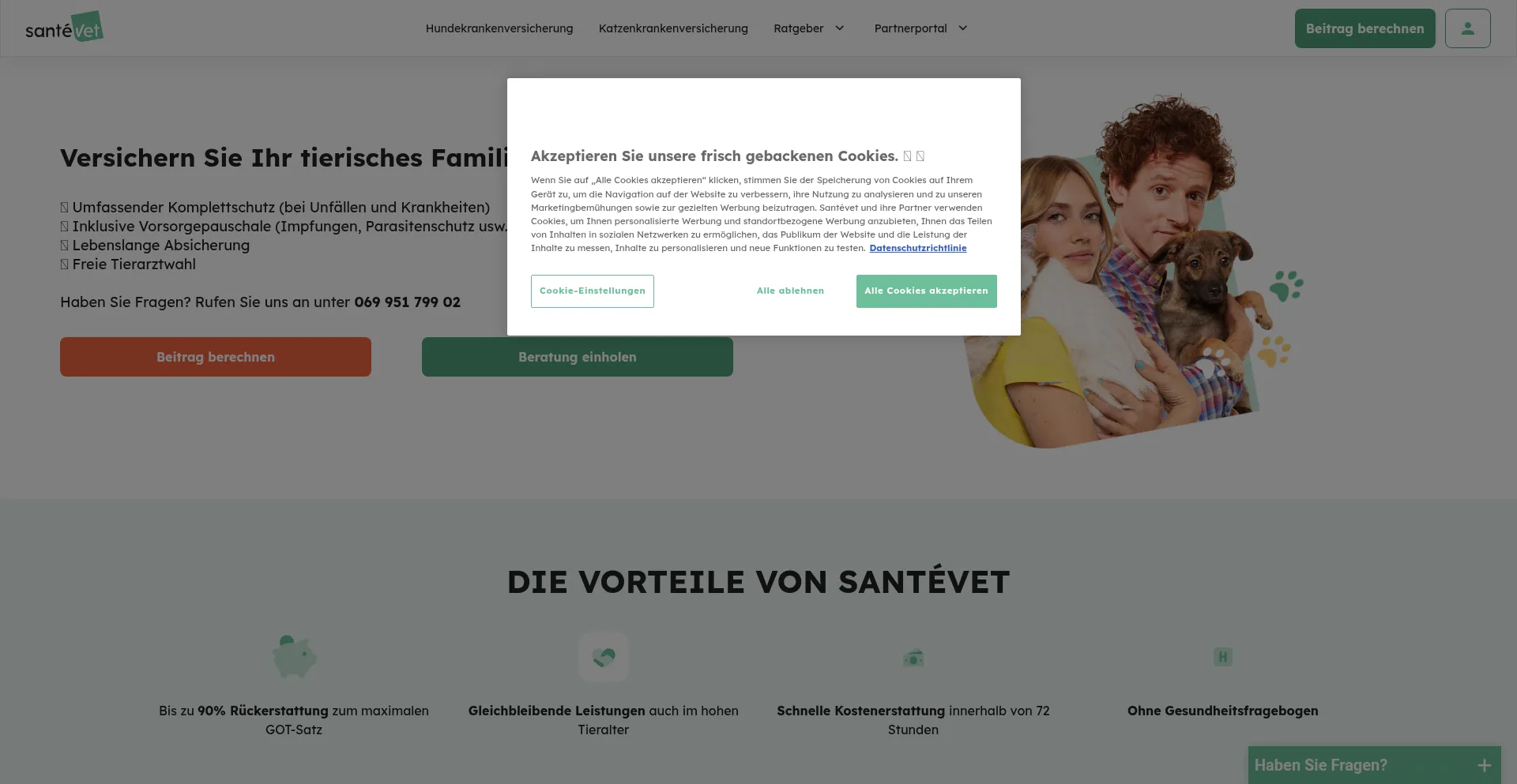 The website implements cookie consent mechanisms in compliance with privacy regulations such as GDPR or CCPA. This demonstrates that santevet.de adheres to data protection standards and provides users with control over personal data collection practices.