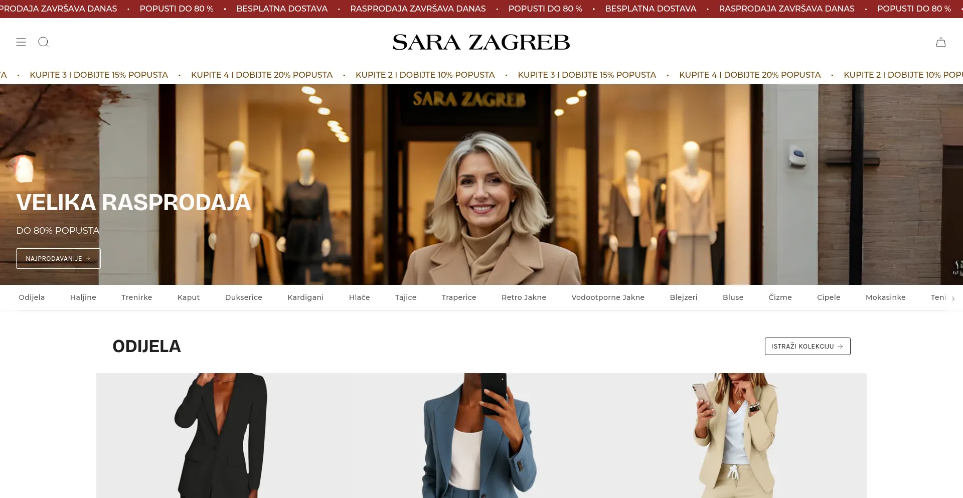 Analysis indicates that sarazagreb.com operates as an e-commerce platform facilitating online transactions for goods or services. The website implements shopping cart functionality, payment processing systems, and product catalog features typical of commercial retail operations.