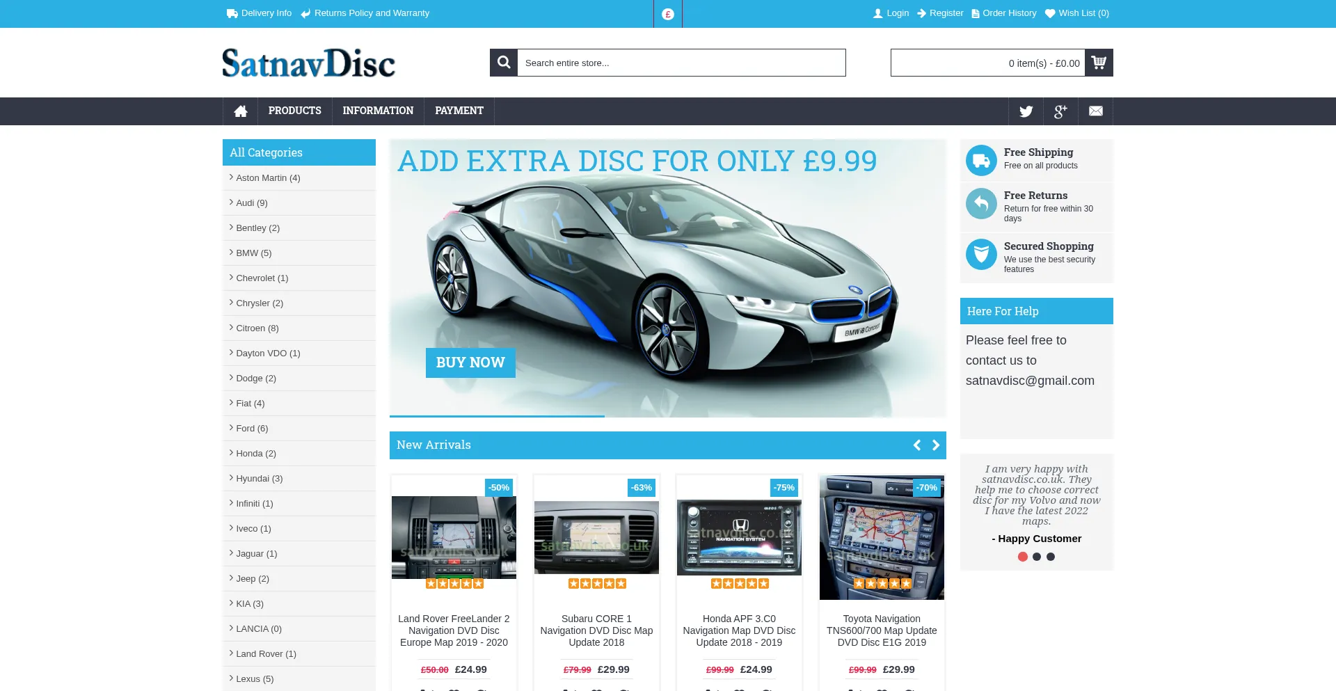 Analysis indicates that satnavdisc.co.uk operates as an e-commerce platform facilitating online transactions for goods or services. The website implements shopping cart functionality, payment processing systems, and product catalog features typical of commercial retail operations.