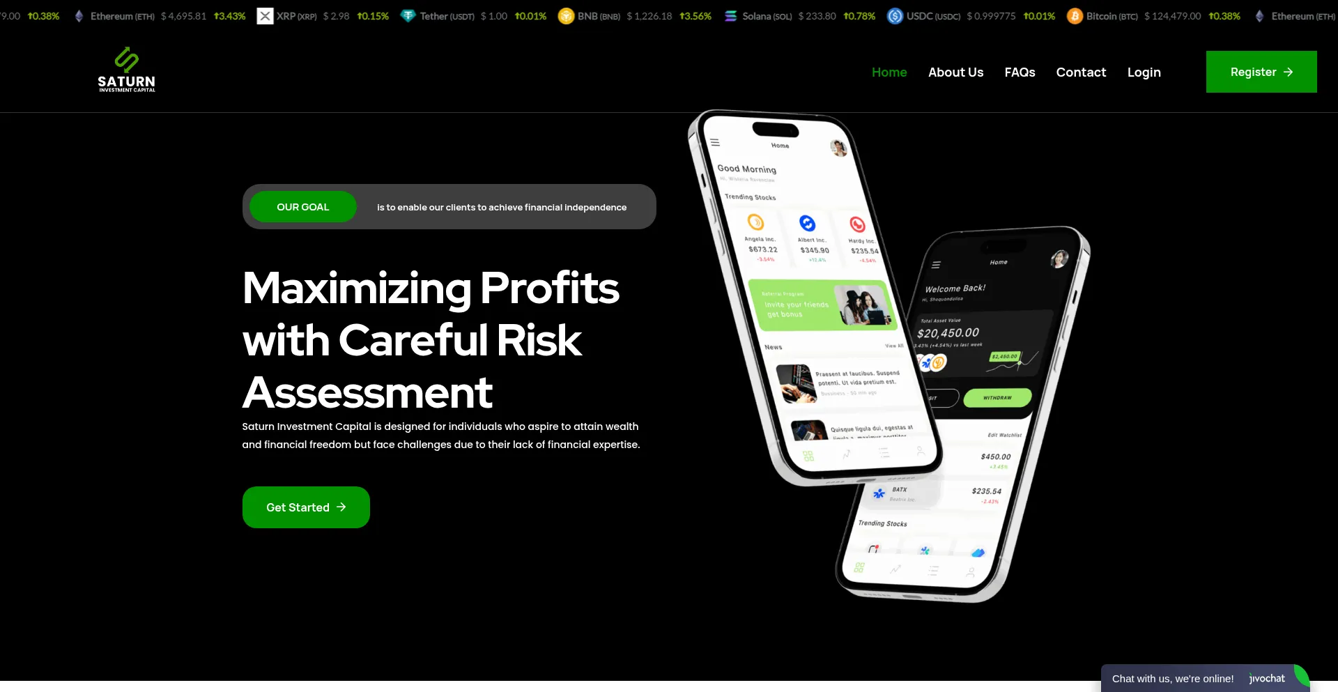 The saturncapitals.com website provides financial services including investment management, wealth advisory, or financial planning solutions. Services may encompass portfolio management, investment opportunities, financial consulting, or asset growth strategies for individual and institutional clients.