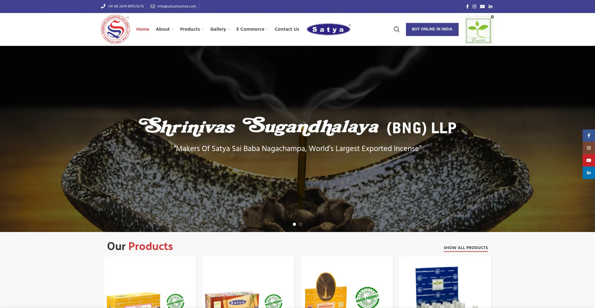 Shrinivas Sugandhalaya (BNG) LLP is the maker of the world famous Satya Sai Baba Nag Champa. For many people, when they think of incense, this is what comes to mind. We offer a ...