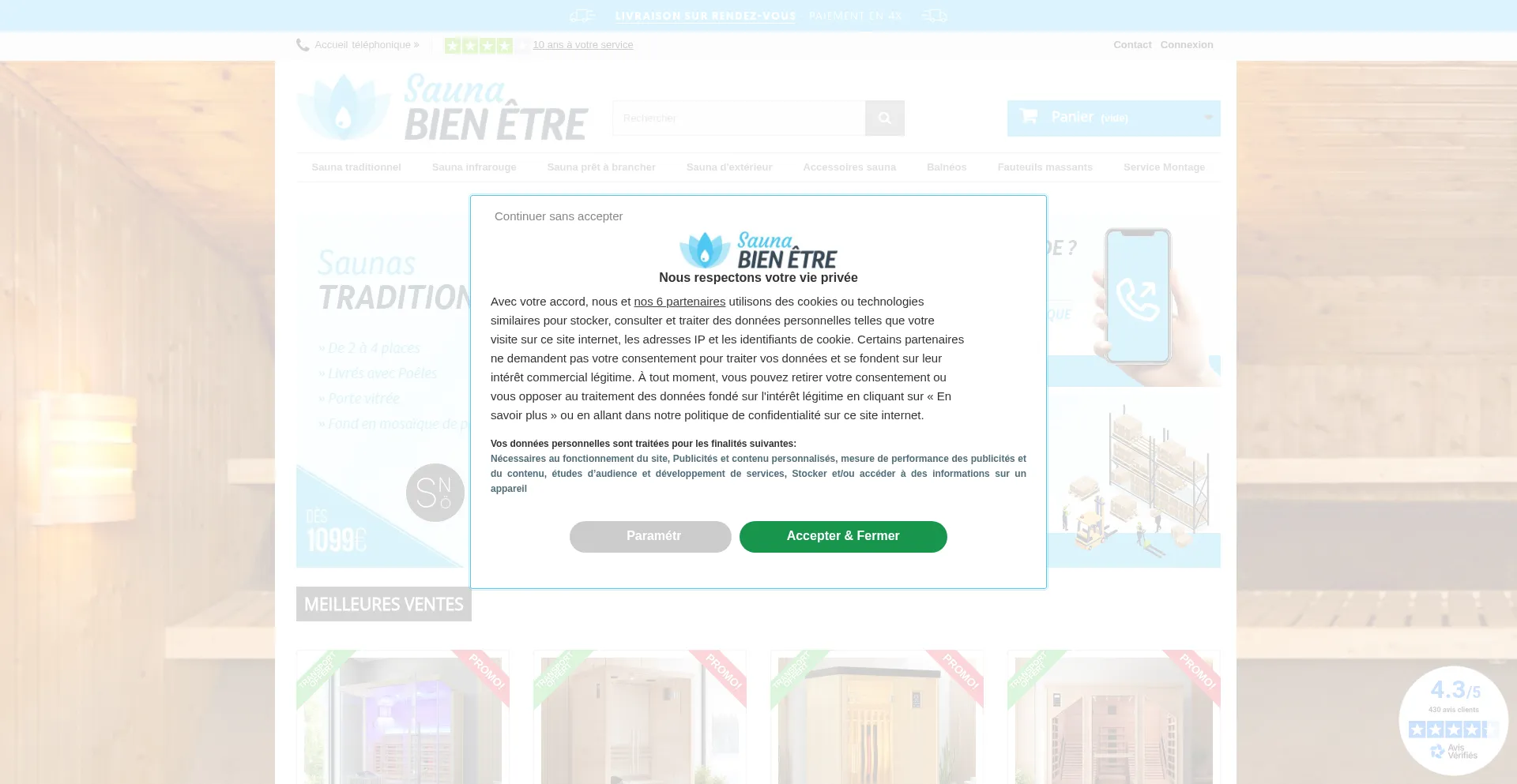 schema.org cdnjs.cloudflare.com sdk.privacy-center.org cdn.scalapay.com sauna-bien-etre.com fonts.gstatic.com fonts.googleapis.com www.sauna-bien-etre.com www.facebook.com cdn.jsdelivr.net +5 more