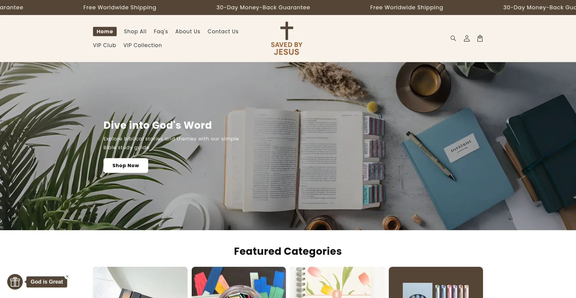 Our analyzer determines that website savedbyjesus.us is using Shopify CMS. Shopify is a popular e-commerce platform, powering around 4.4% of websites globally.