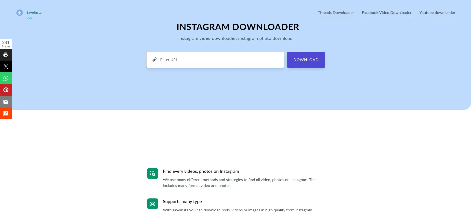 saveinsta is a tool that allows you to download instagram videos ,instagram story, instagram reels
