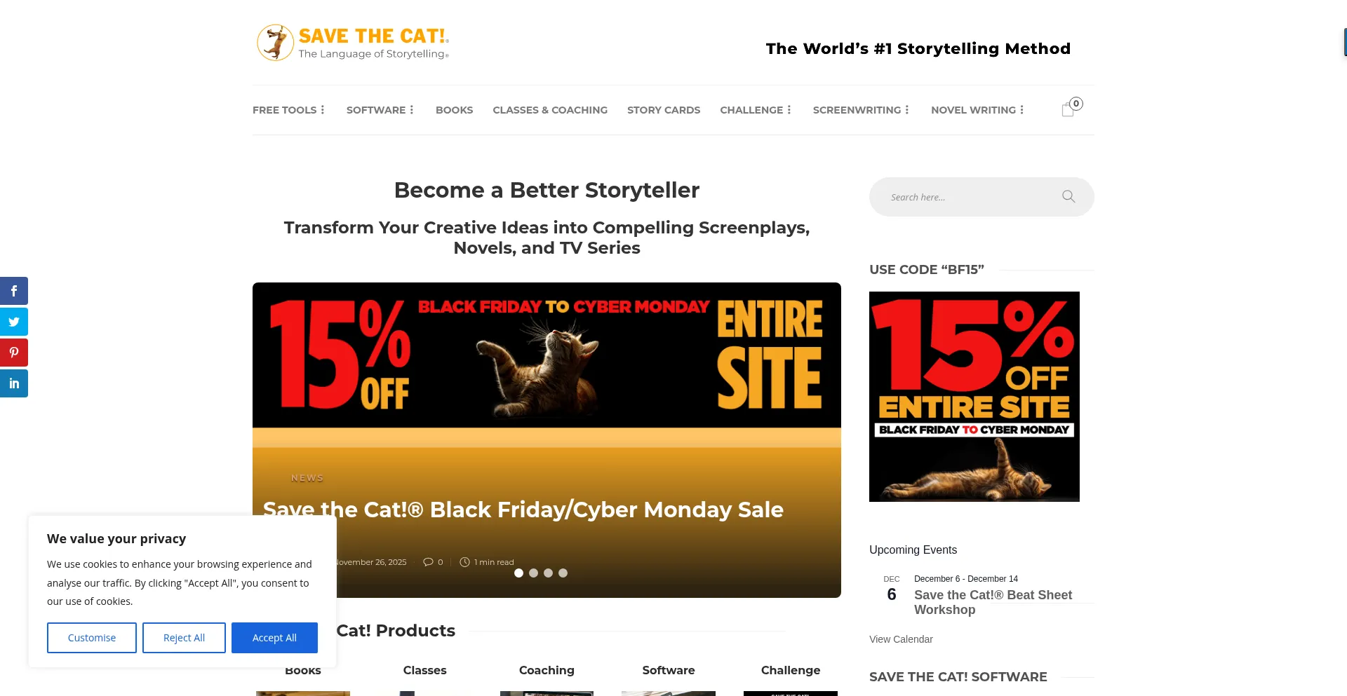 Save the Cat! Scriptwriting website is a one-stop resource for writers, offering everything you need to develop screenplays and novels, from scriptwriting software to coaching