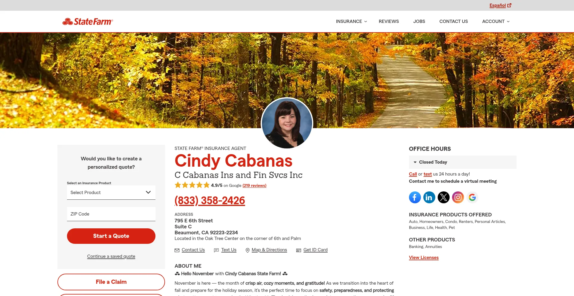 Call State Farm Agent Cindy Cabanas at (951) 845-4634 for your auto, home, life insurance and much more in CA, AZ, NV, and OR!