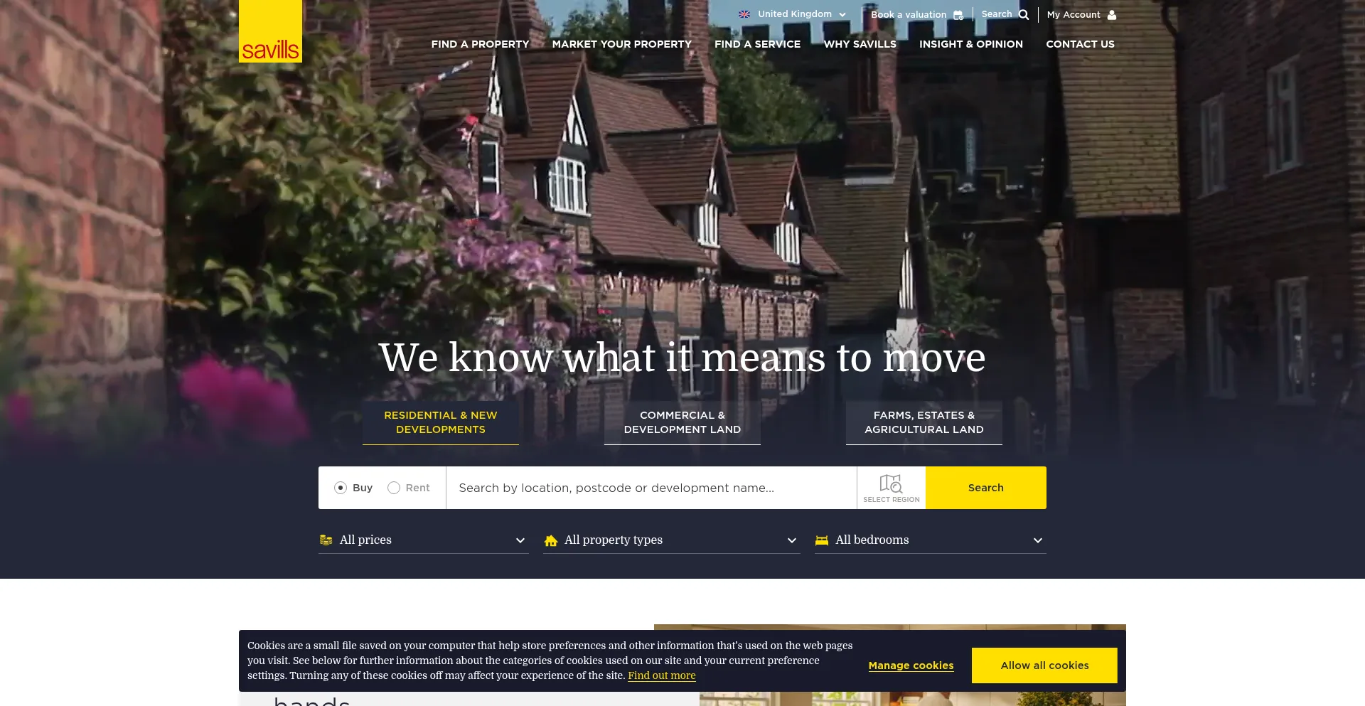 The website implements cookie consent mechanisms in compliance with privacy regulations such as GDPR or CCPA. This demonstrates that savills.co.uk adheres to data protection standards and provides users with control over personal data collection practices.