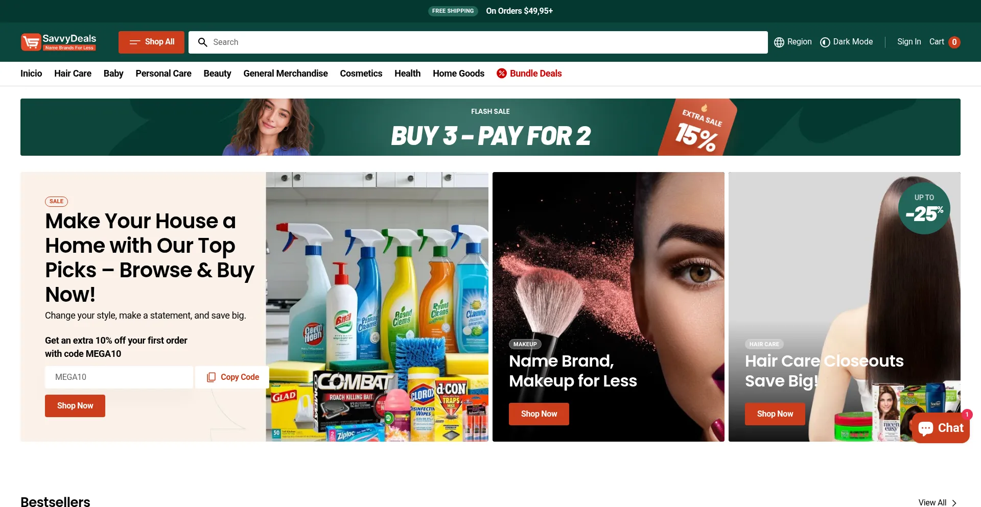 The savvydeal.com website utilizes free e-commerce platform solutions, which may indicate cost-conscious operations but could also suggest limitations in security features, customer support, or advanced functionality compared to enterprise-grade solutions.