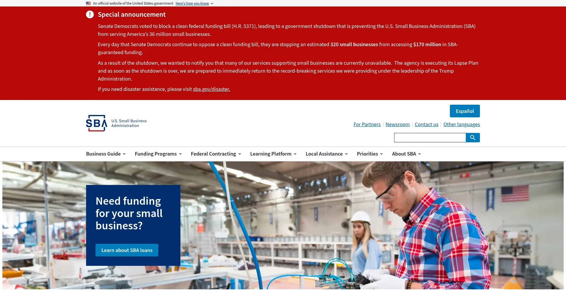 We support America's small businesses. The SBA connects entrepreneurs with lenders and funding to help them plan, start and grow their business.