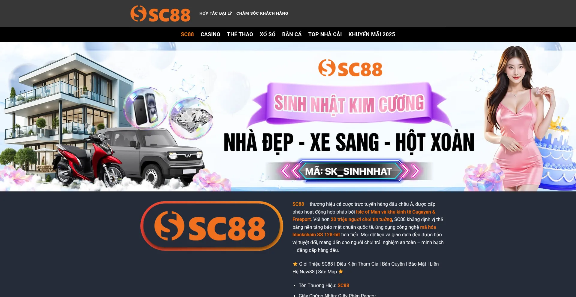 SC88 – thương hiệu cá cược trực tuyến hàng đầu châu Á, được cấp phép hoạt động hợp pháp bởi Isle of Man và khu kinh tế Cagayan & Freeport.