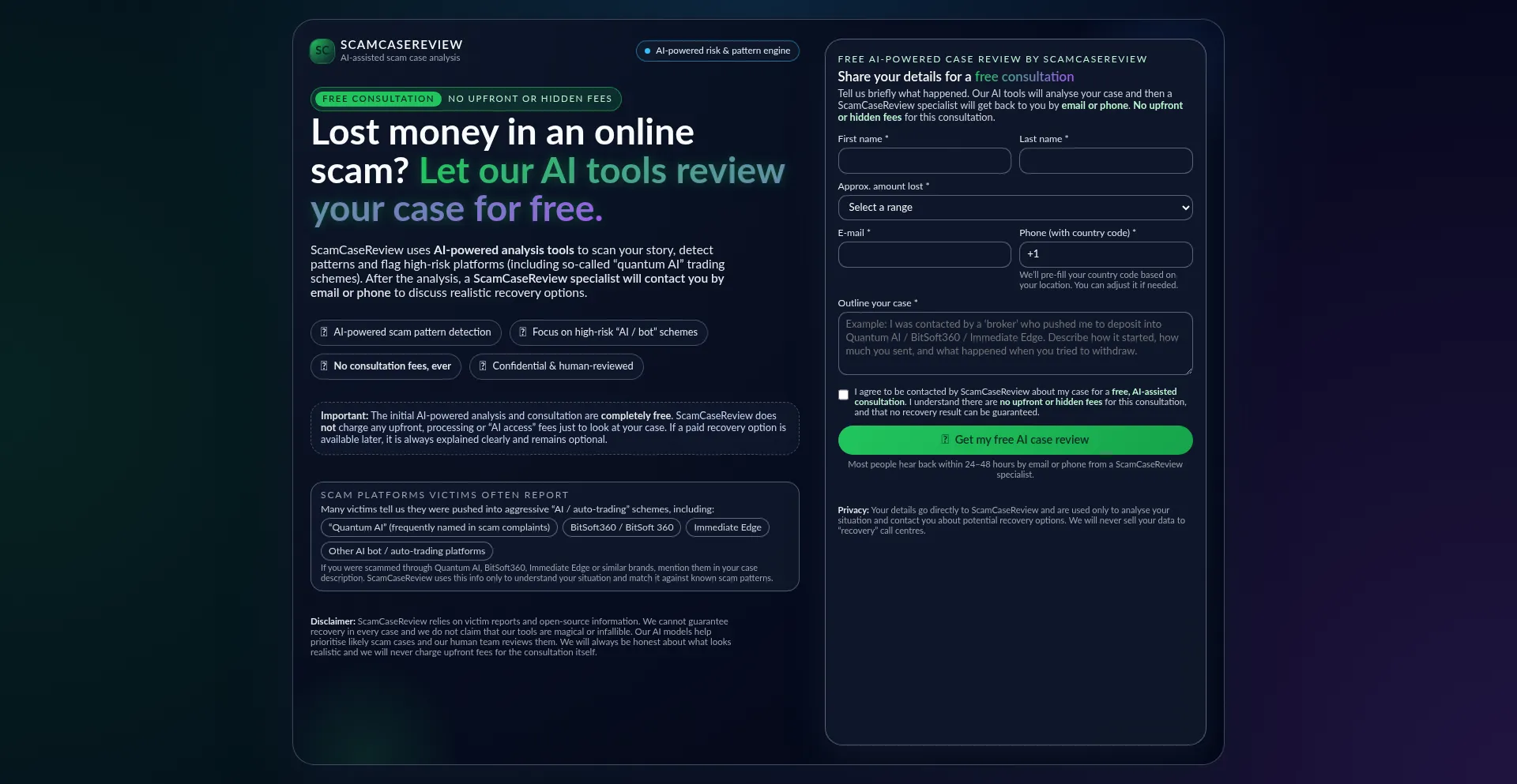 ScamCaseReview – AI-Powered Scam Case Review (Free, No Hidden Fees)