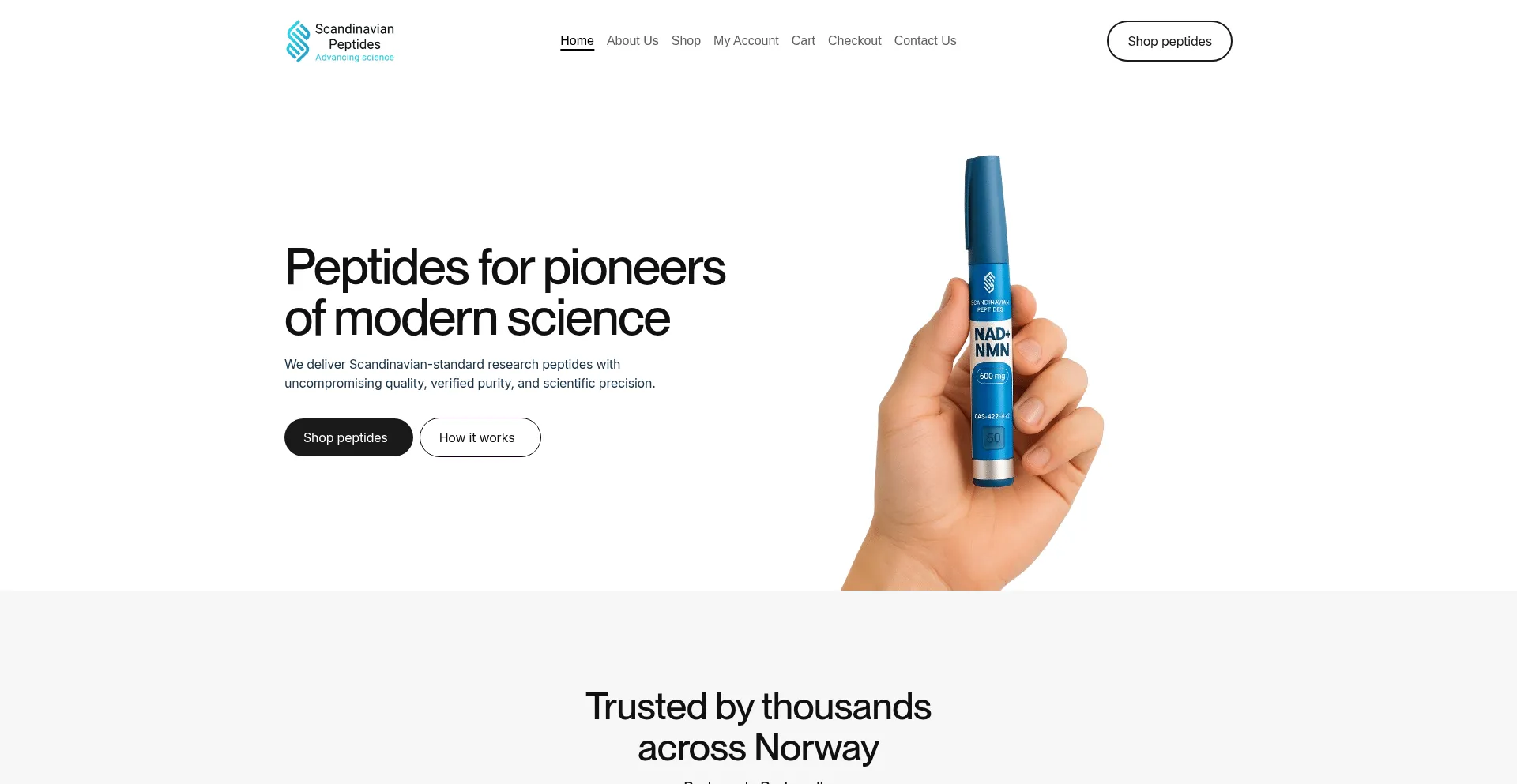 Analysis indicates that scandinavianpeptides.com operates as an e-commerce platform facilitating online transactions for goods or services. The website implements shopping cart functionality, payment processing systems, and product catalog features typical of commercial retail operations.