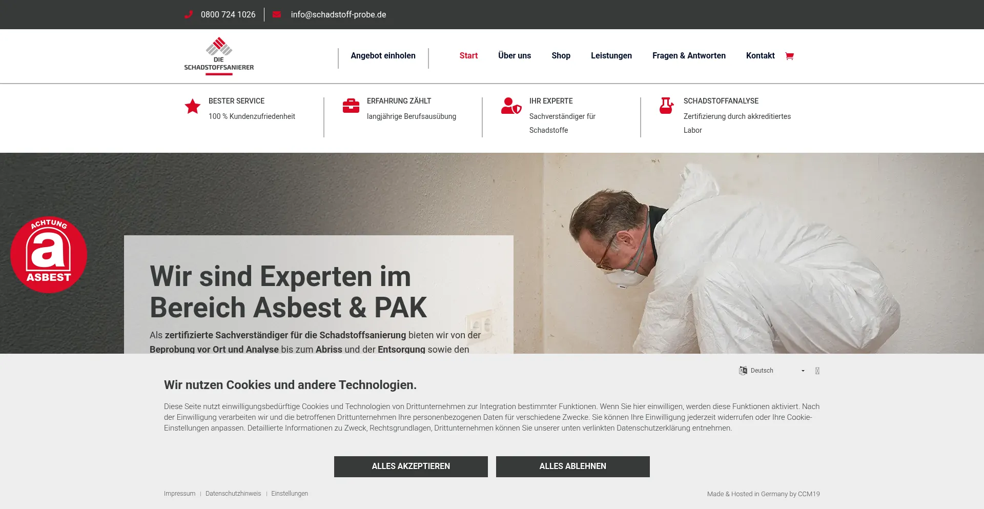 The schadstoff-probe.de website uses Google Tag Manager to add and update tracking tags on its website.
