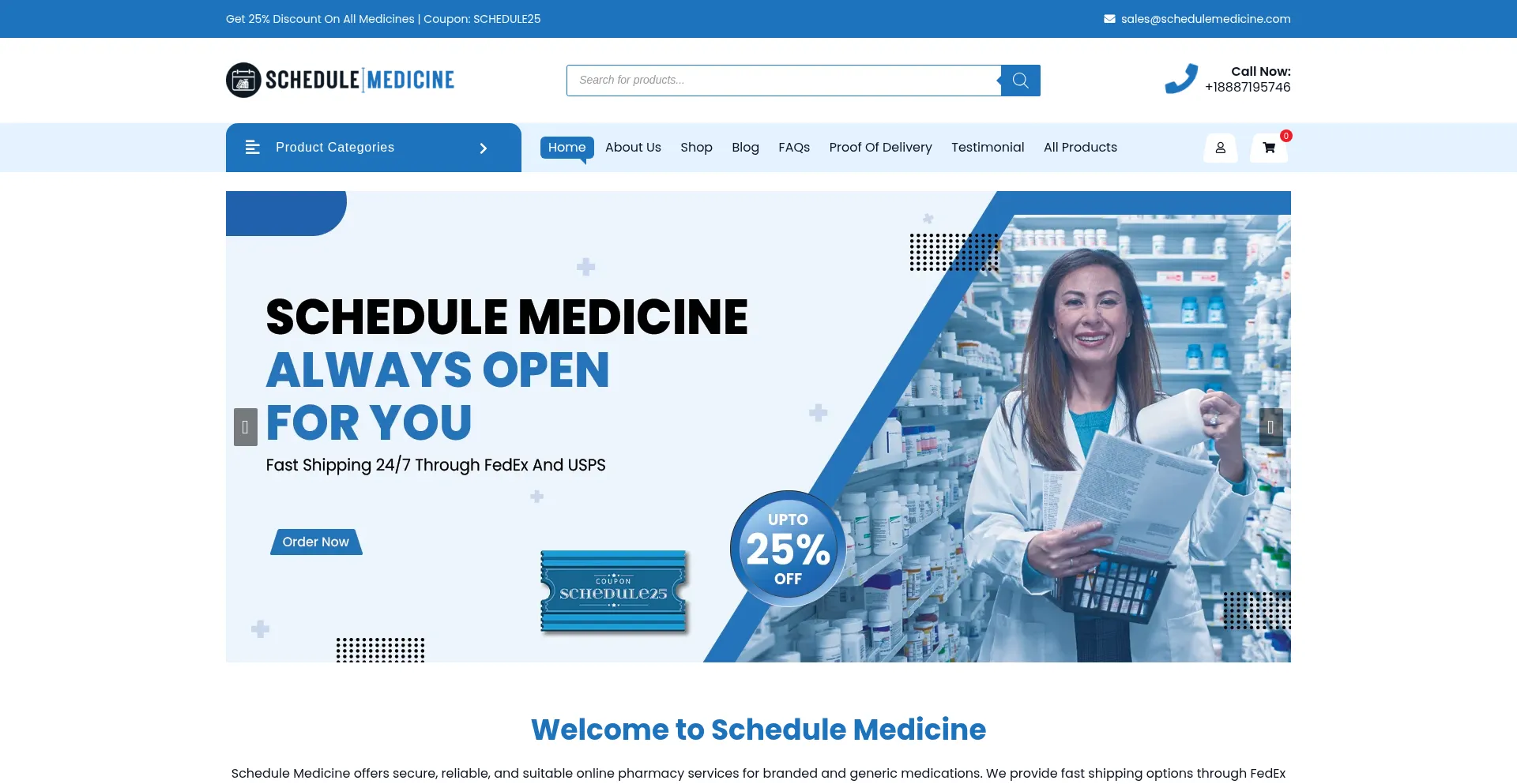 Schedule Medicine offers secure, reliable, and convenient online pharmacy for brand and generic medication with FedEx and USPS Shipping Options.