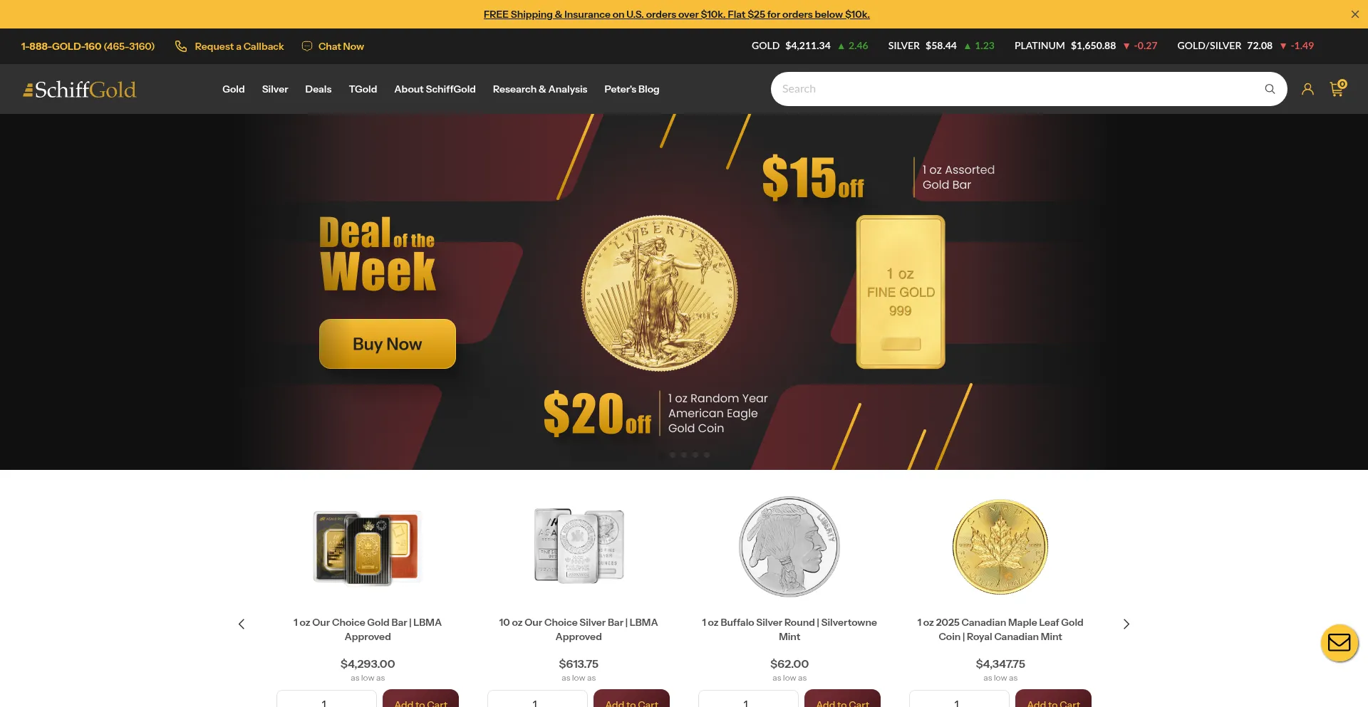 SchiffGold is precious metals dealer specializing in gold and silver bullion. We offer the highest overall value based on price, integrity and experience.