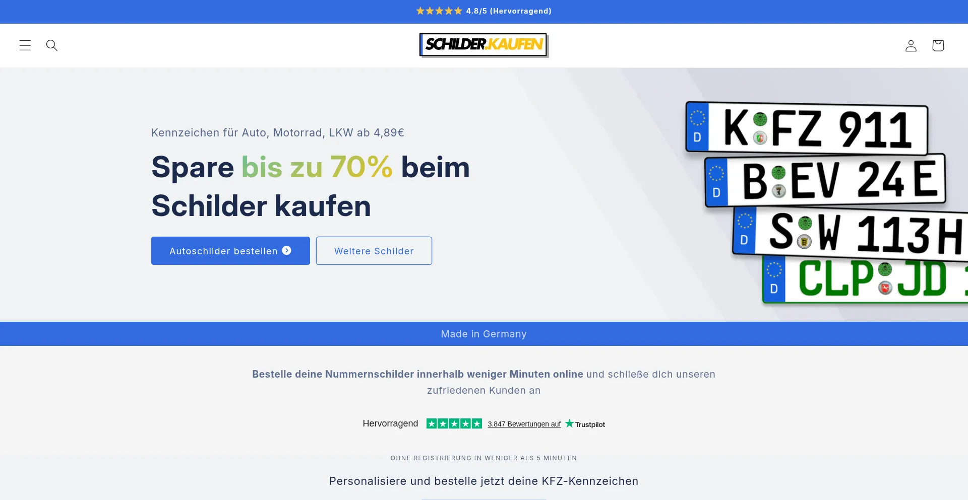 schilder.kaufen has a good Trustpilot score (4.8) based on 3847 reviews, indicating a high level of trust from customers. It is a good sign of legitimacy!