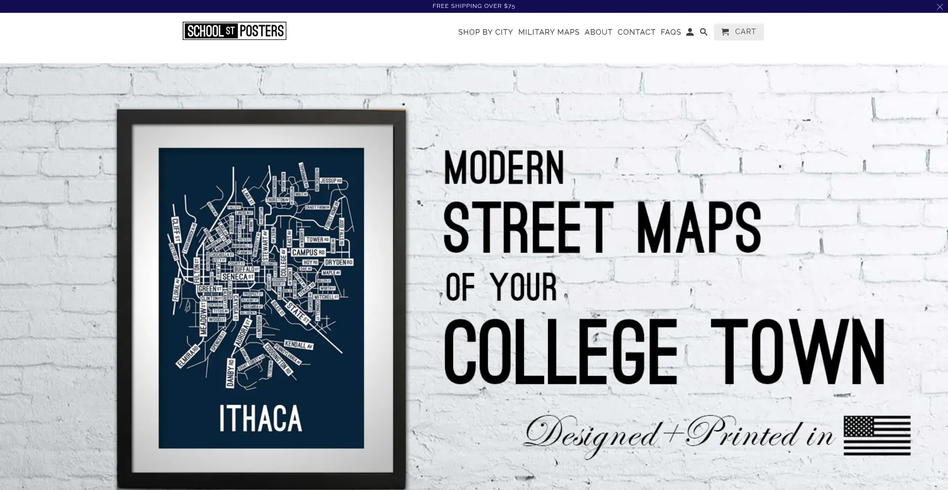 Modern Street Map Prints of Your College Town! The Perfect Gift for College Students and Alumni. Made in USA. Posters, acrylic, metal, canvas, frames.