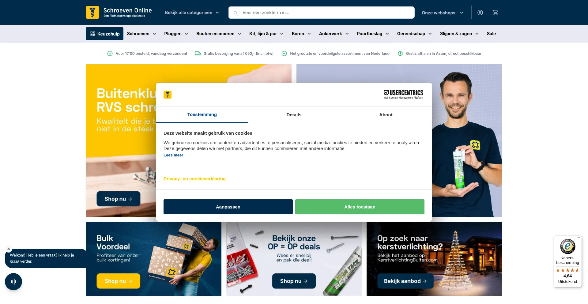 The schroeven-online.nl website uses Google Tag Manager to add and update tracking tags on its website.