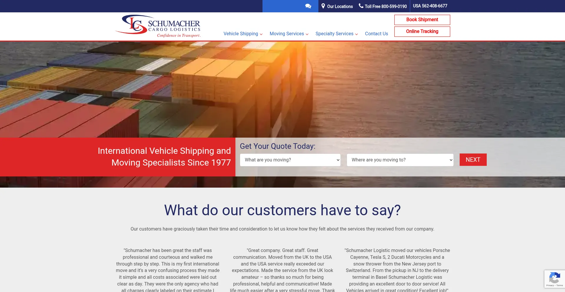Schumacher Cargo specializes in international shipping, car shipping, international moving and professional relocation. Call 800-599-0190 for a quote.