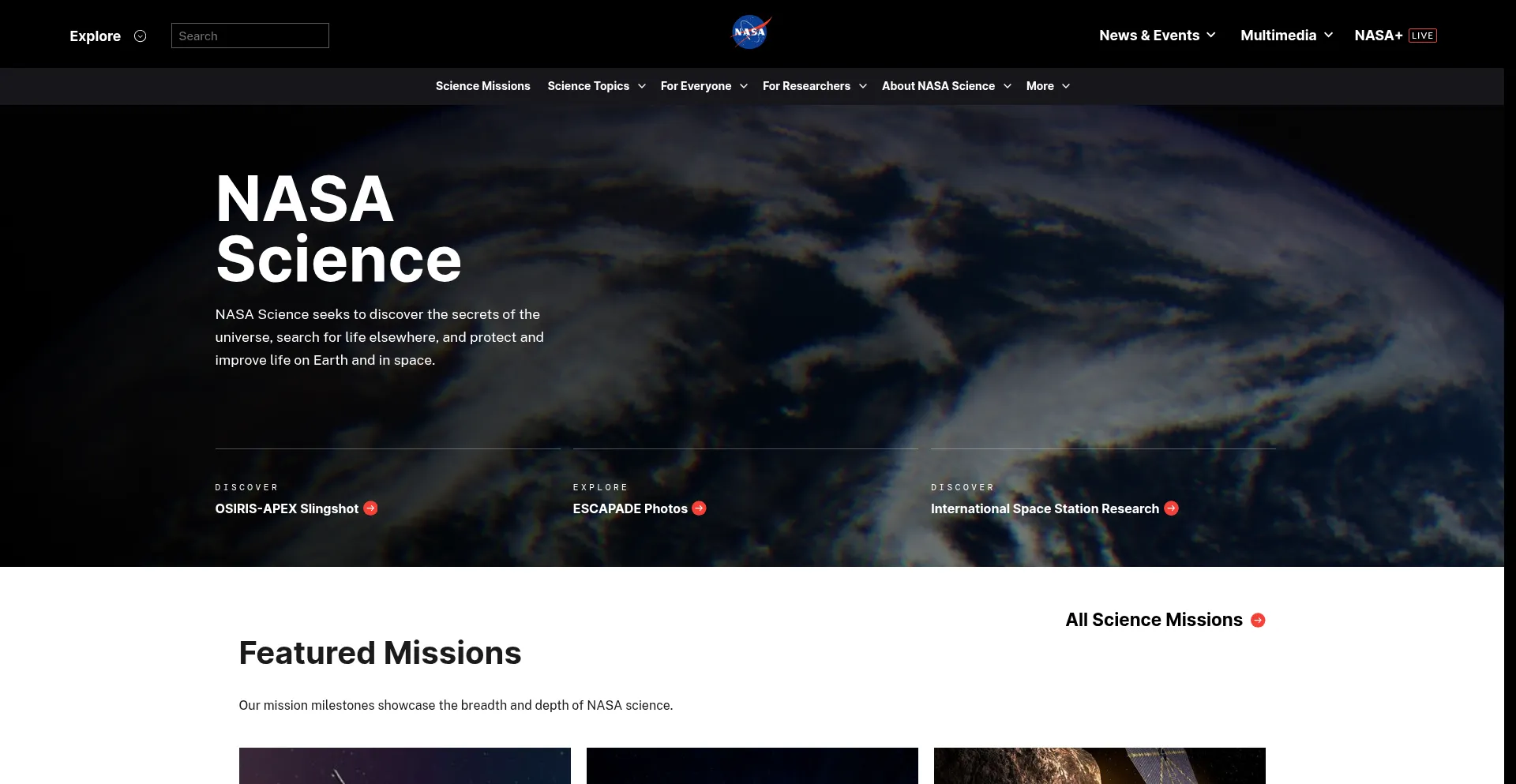 NASA Science seeks to discover the secrets of space, the origins of the universe, search for life elsewhere, and protect and improve life on Earth.