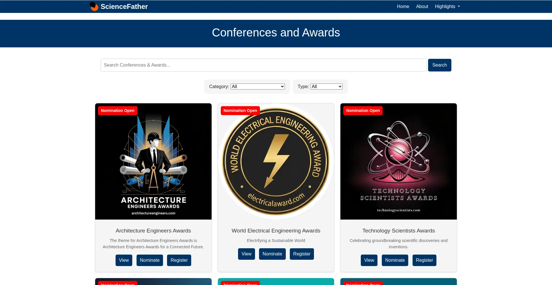 Discover global conferences and international research awards across all disciplines. Nominate, register, and participate in leading scientific events.