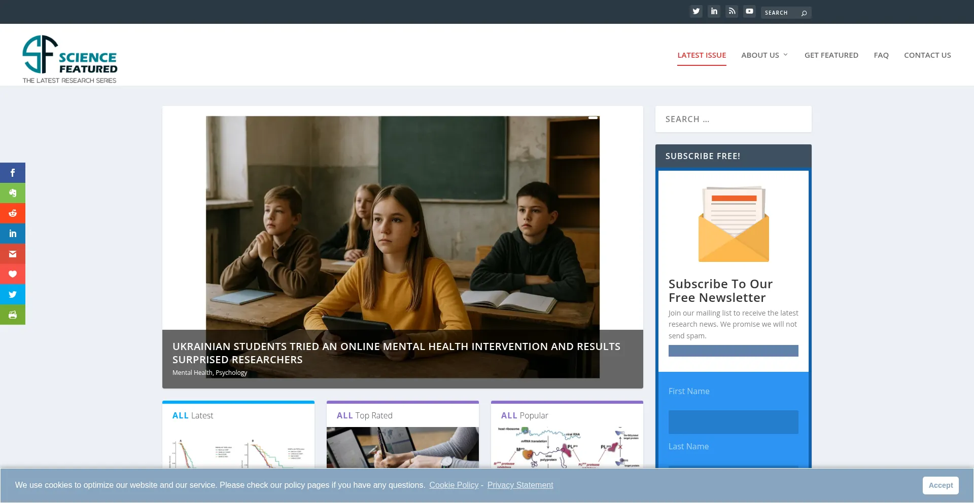 The website implements cookie consent mechanisms in compliance with privacy regulations such as GDPR or CCPA. This demonstrates that sciencefeatured.com adheres to data protection standards and provides users with control over personal data collection practices.