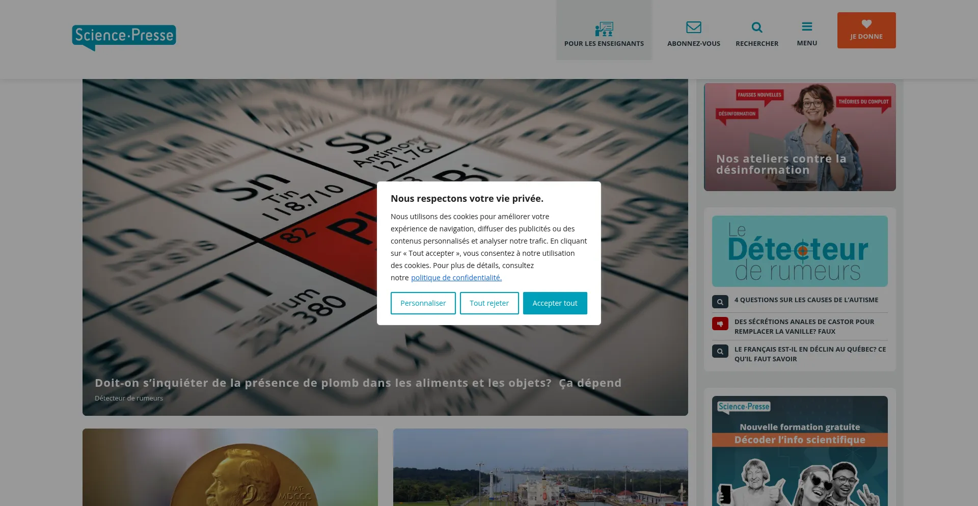 The website implements cookie consent mechanisms in compliance with privacy regulations such as GDPR or CCPA. This demonstrates that sciencepresse.qc.ca adheres to data protection standards and provides users with control over personal data collection practices.