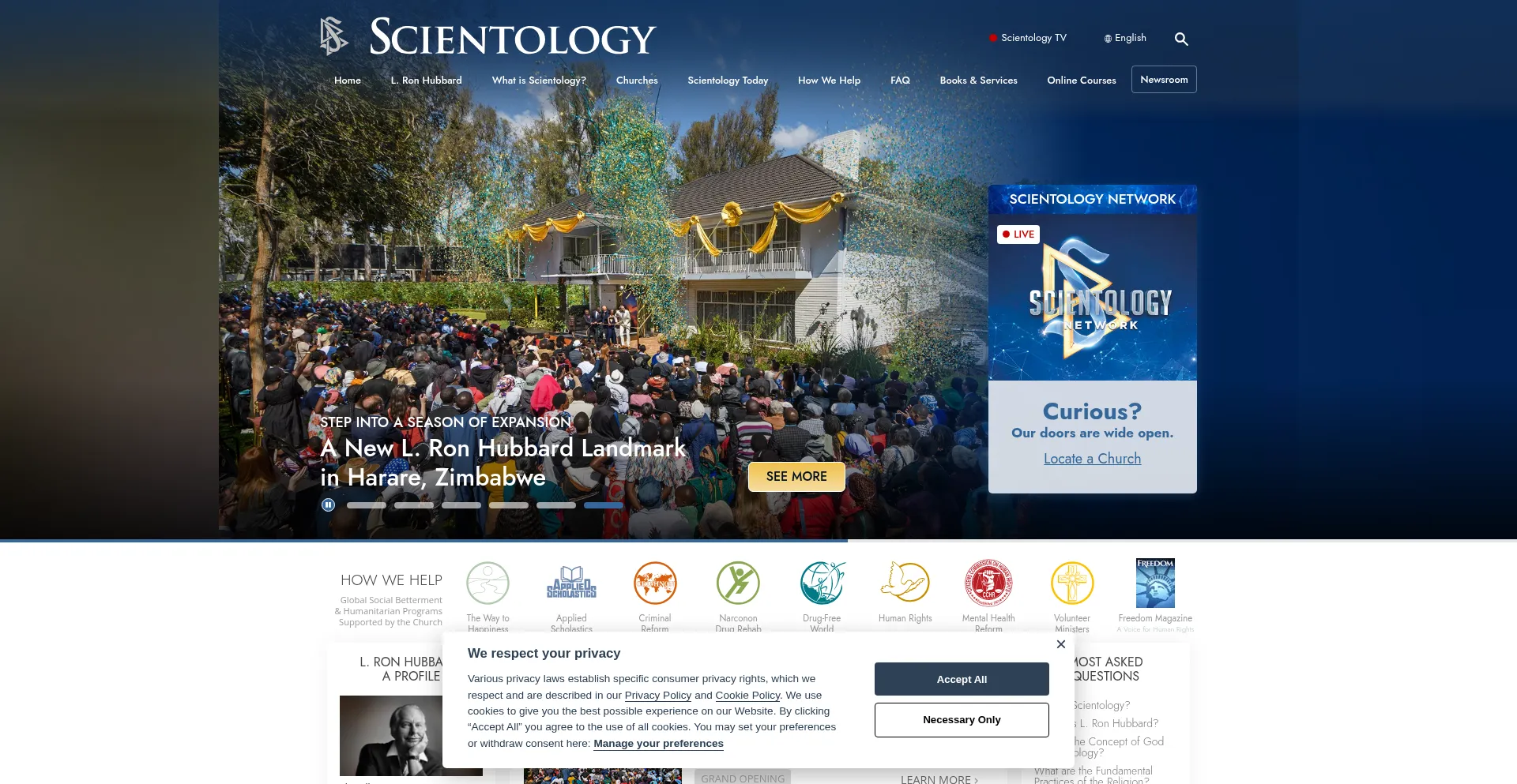 The website implements cookie consent mechanisms in compliance with privacy regulations such as GDPR or CCPA. This demonstrates that scientology.org adheres to data protection standards and provides users with control over personal data collection practices.