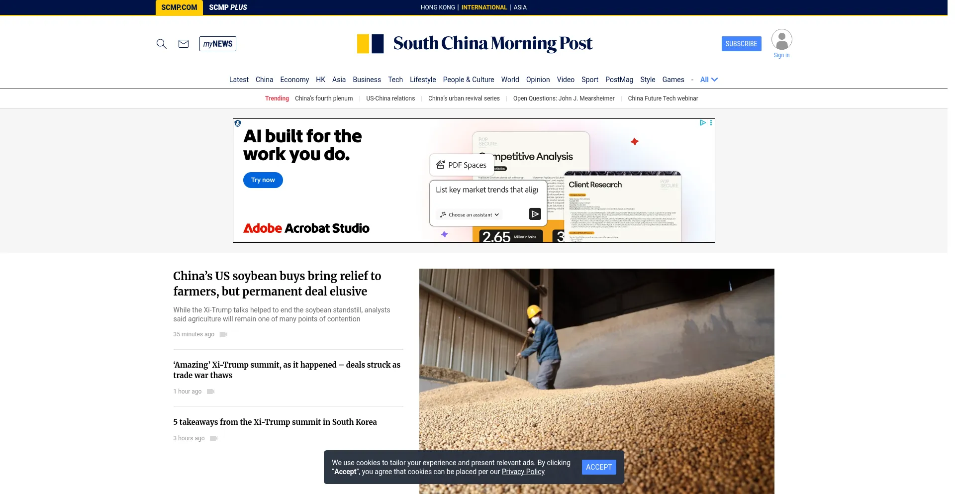 The website implements cookie consent mechanisms in compliance with privacy regulations such as GDPR or CCPA. This demonstrates that scmp.com adheres to data protection standards and provides users with control over personal data collection practices.