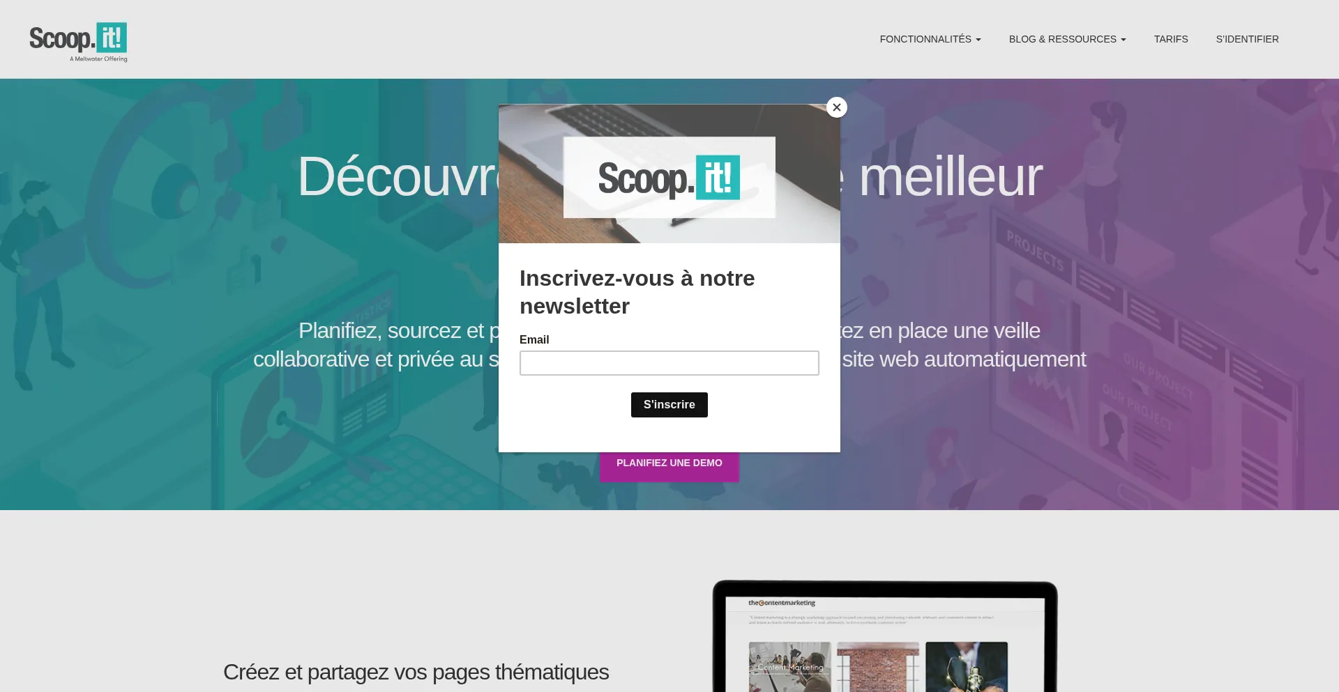 The scoop-it.fr website employs search engine optimization (SEO) techniques to improve its visibility and ranking in search engine results pages (SERPs).