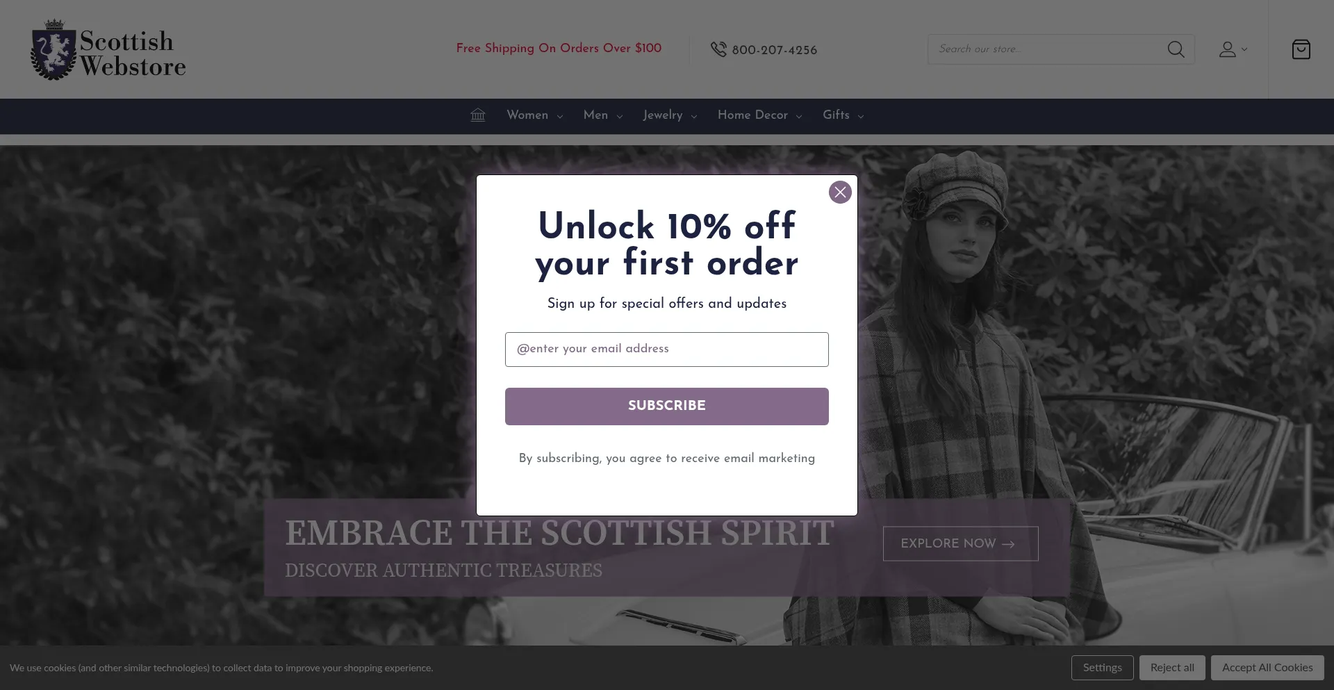 The website implements cookie consent mechanisms in compliance with privacy regulations such as GDPR or CCPA. This demonstrates that scottishwebstore.com adheres to data protection standards and provides users with control over personal data collection practices.
